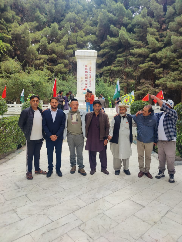 Manzoor Hussain, a son of the late Madad Ali who dedicated his life to guarding the Chinese graveyard in Gilgit and has now taken over this decades‑long family mission, joined representatives from the China-Pakistan Youth Exchange Community, teachers and students of the Pakistan Chinese Education Association, road‑construction veterans and their families, caretakers of the martyrs' cemetery, and delegates from the Overseas Chinese Association Gilgit‑Baltistan at the event.